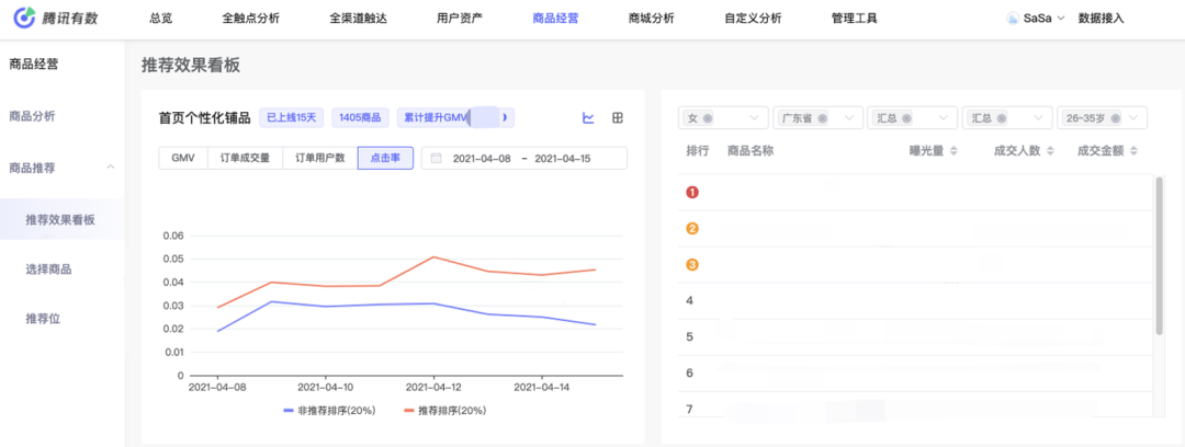 通过腾讯有数的商品推荐能力,莎莎商城内的GMV提升48%,CTR提升91%。