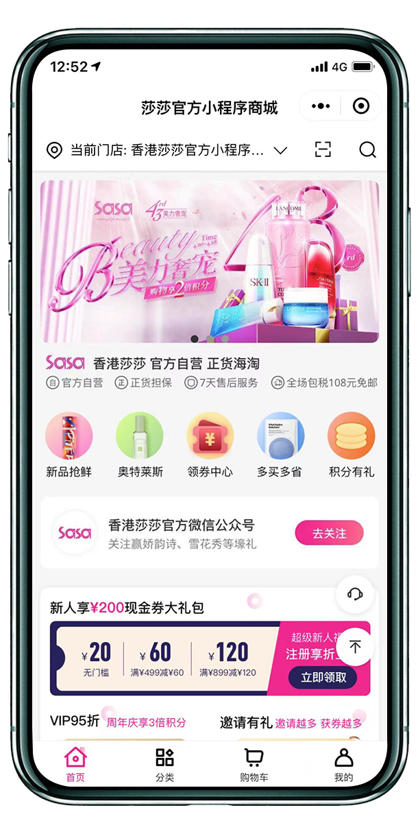 微信搜一搜“香港莎莎”,可领取新人大礼包,